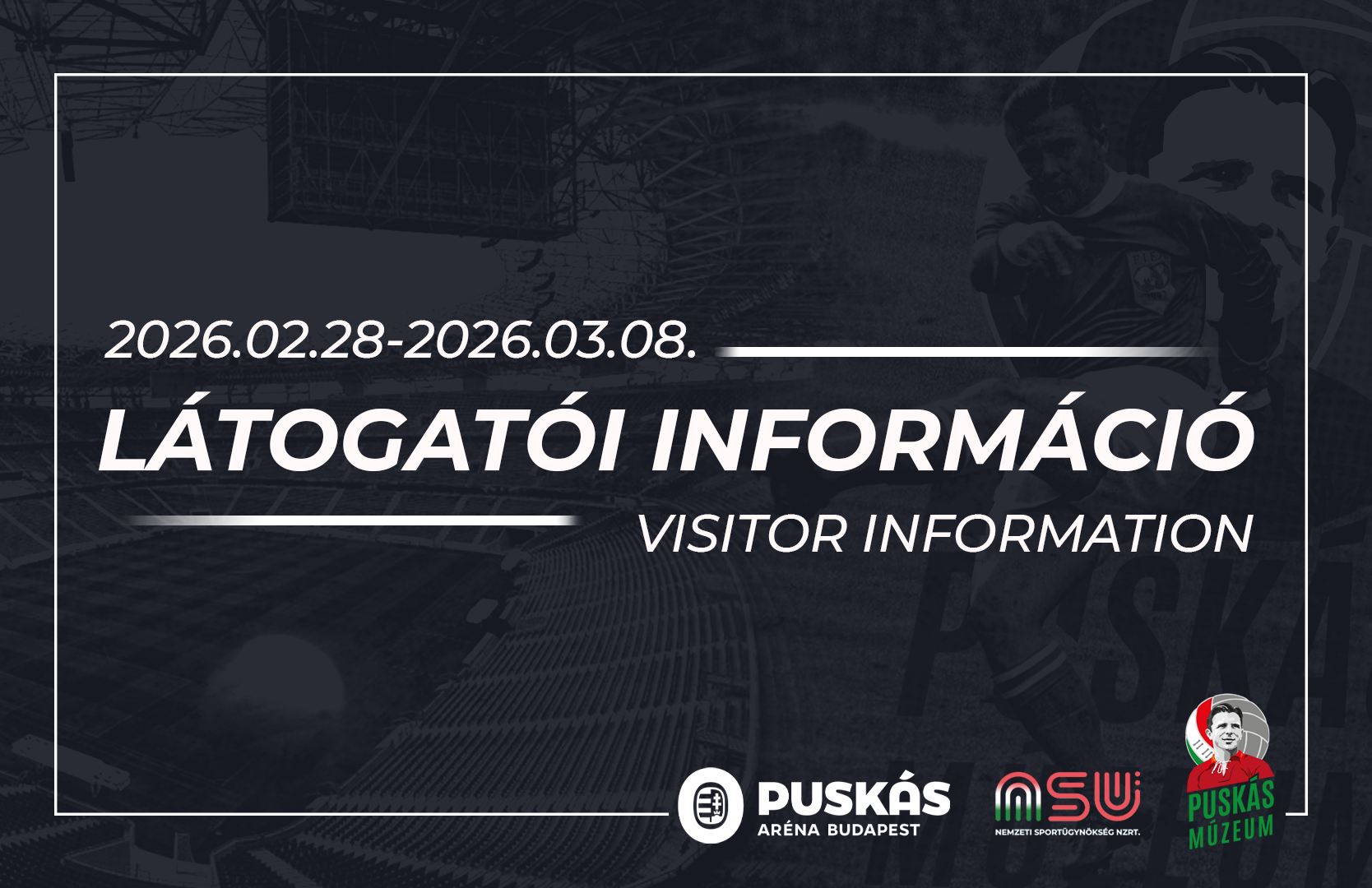 A Puskás Arénában megrendezésre kerülő Magyarország–Írország világbajnoki selejtező mérkőzés miatt múzeumunk programkínálata és elérhetősége módosul.